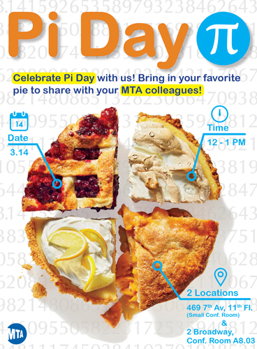 Creating a Pi Day poster for MTA (Metropolitan Transportation Authority) employees can be a great way to celebrate this mathematical holiday. Here’s a poster design: